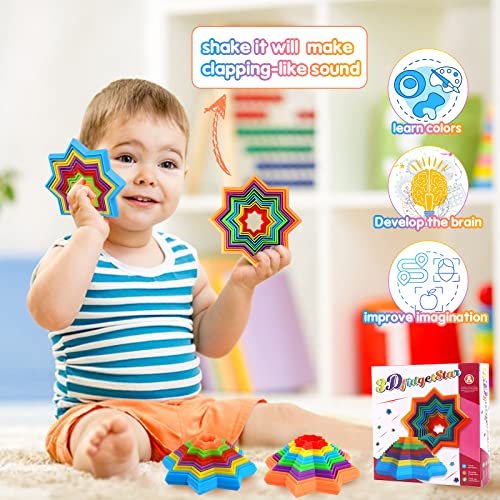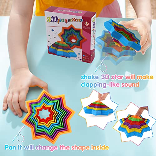 【Educational Sensory Toys for kids】Every 3D puzzles star fidget toy consists of 12 layers of stars with 6 colors. Kids can shak, pull or move a 3D star fidget toy, it will change into different shapes. Shaking star fidget toy will make a pleasent clapping-like sound. 3D star fidget toys can help kids to learn colors, improve imagation and motor skills. Really interesting sensory toys for toddlers and kids!
